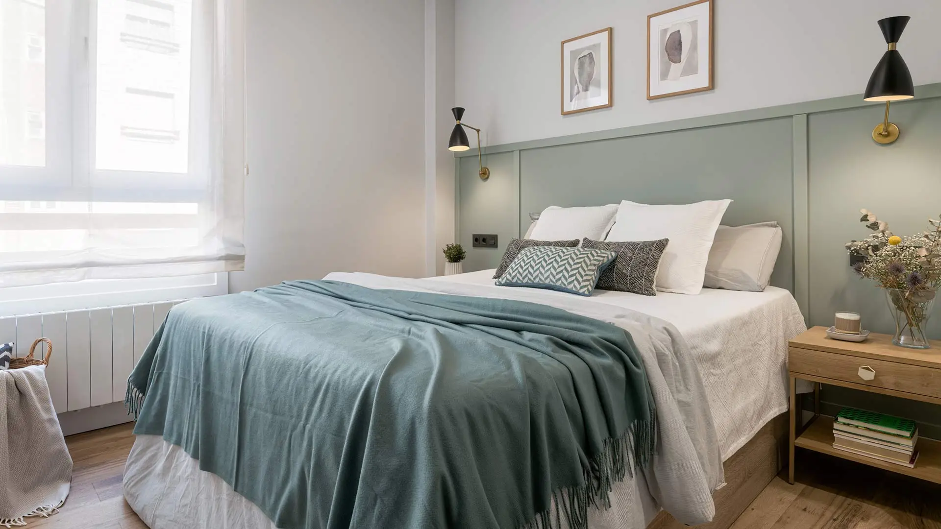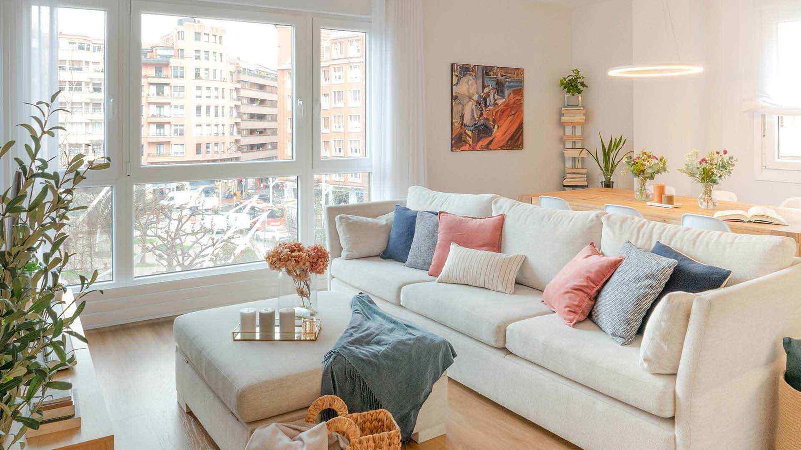 La elección de muebles sencillos hace brillar todos los cuadros que personalizan este piso bilbaíno, aliñado, además, con piezas antiguas de gran belleza.
